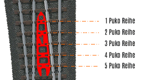 Unser Puko-Isolator für die schlanken Weichen schafft Abhilfe! (24711 und 24712). Die "Isos" können einfach auf die Punktkontakte aufgesteckt werden. Im Fahrbetrieb sorgt der Isolator für das problemlose vorbeirollen der Räder im Abzweigbereich. Außenliegende Punktkontakte können nicht berührt werden. Die Kontaktsicherheit des Schleifers wird natürlich nicht beeinträchtigt.